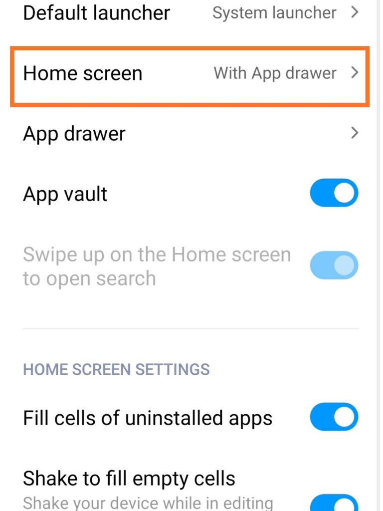 Step 7 :- Open the Home screen Setting